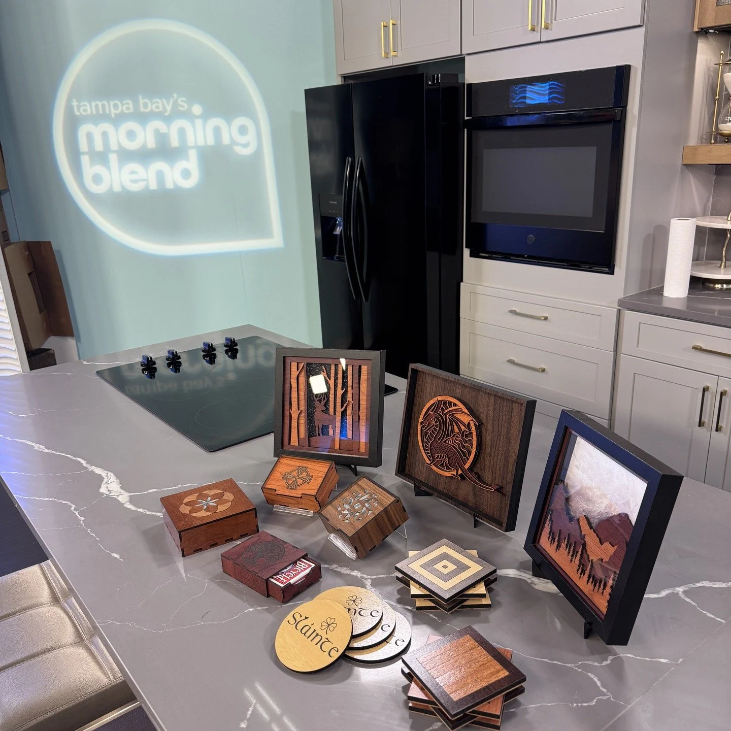 Not an interview, but our booth was featured during a segment on WFLA NBC Channel 8 about the Sponge Docks show. They showed our booth and a set of our coasters. Click on the image to see the segment. We pop up at about 1:05.